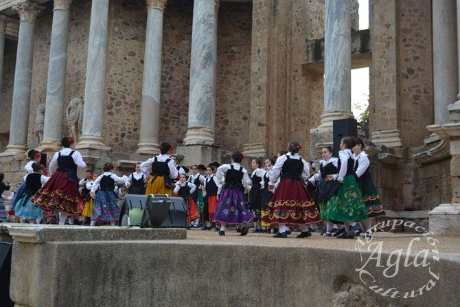 La Escuela de Danzas Tradicionales de la Agrupación Cultural Agla estuvo presente, como cada año, sobre las tablas del escenario del Teatro Romano de Mérida, durante la clausura de las escuelas folklóricas de Mérida que organiza la Agrupación Folklórica de Nuestra Señora de la Antigua.