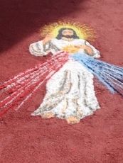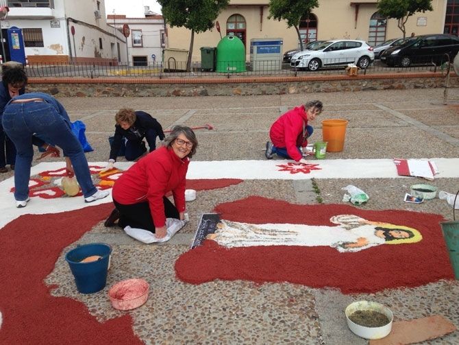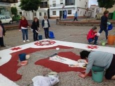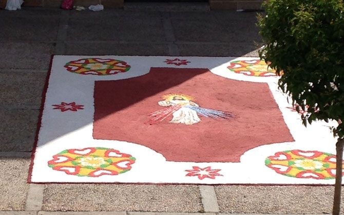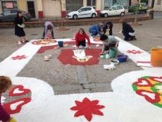 Alfombra de sal y flores en las parroquias montijanas para celebrar el Corpus