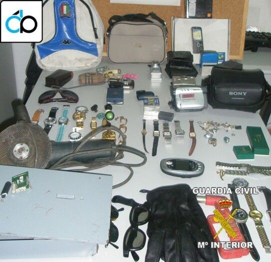 En el garaje del detenido se recuperaron joyas, aparatos audiovisuales, baterías, bolsos, carteras, cazadoras, …valorados en mas de 20.000 €.
