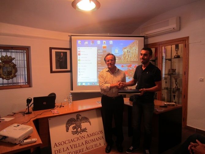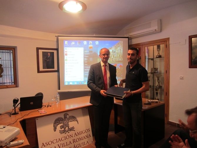 El alcalde de Barbaño, hizo entrega de unas placas como recuerdo de esta Jornada Técnica a los ponentes, presidente de la Asociación de Amigos de la villa romana de Torreáguila y al director general Pérez Urbán.
