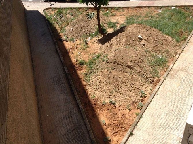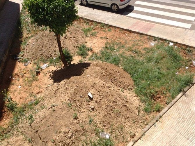 Hace más de dos meses arrancaron el seto que rodeaba el jardín, y los rosales que hay en la Calle América (en la zona de los pisos del Conde). Ahora se está convirtiendo en un vertedero, con basura y excrementos de perro. Adecenten la zona cuanto antes, por favor.
