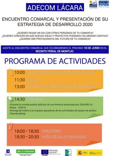 El sábado 18 de junio se celebra en Montijo el Encuentro Comarcal organizado por ADECOM Lácara, encuentro que estaba programado en fechas anteriores y que tuvo que aplazarse debido al mal tiempo.