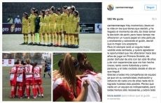 Continúa, eso sí, en Primera División, subiendo peldaños, ya que la futbolista ha fichado por el Atlético de Madrid, equipo que ostenta actualmente el título de Campeón de la Copa de la Reina.