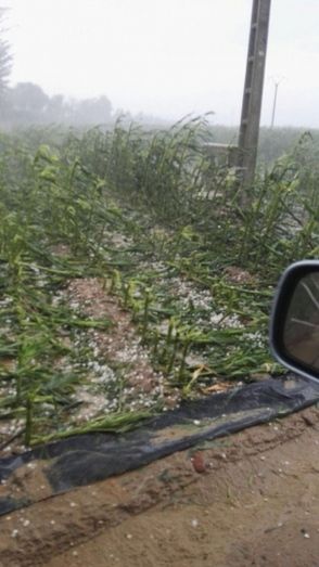 Recordemos que esta campaña empezó con lluvias torrenciales en mayo que arruinaron las cosechas, el domingo 3 de julio las tormentas con rachas d viento superiores a 80km/h que arrasaron los cultivos extensivos y a lo que se suma la granizada del día de ayer, más las tormentas que se esperan para el día de hoy."