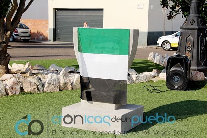 Una placa recuerda que Puebla de la Calzada es "Pueblo Solidario con el Alzheimer"