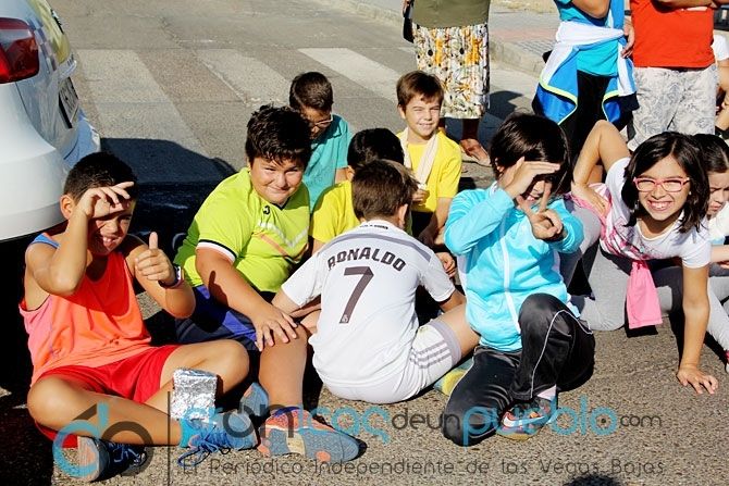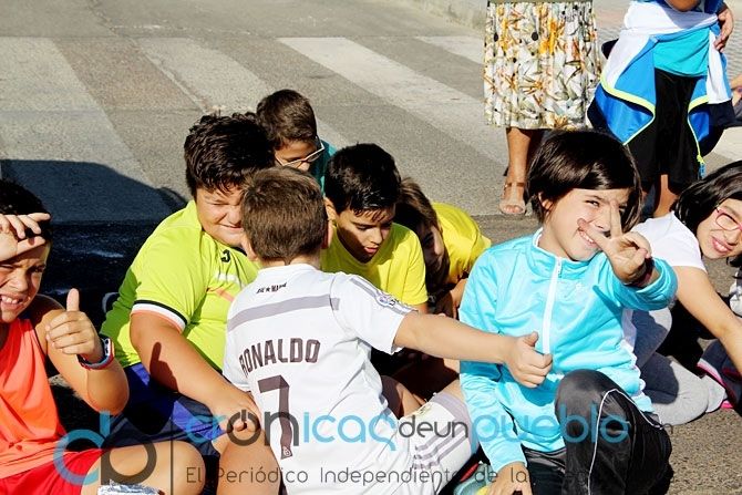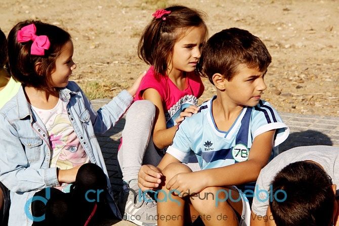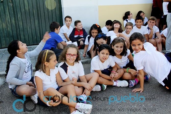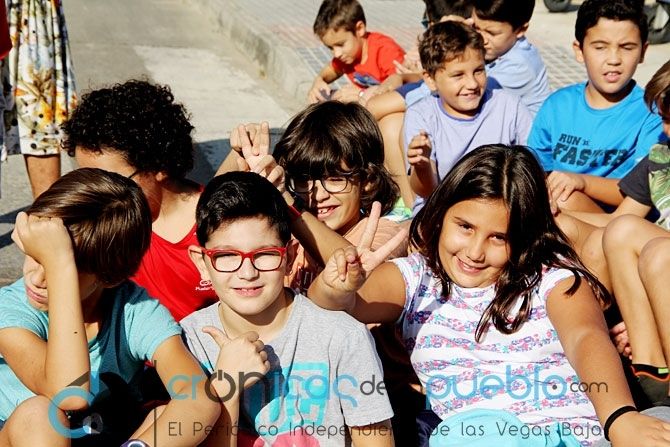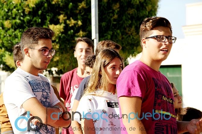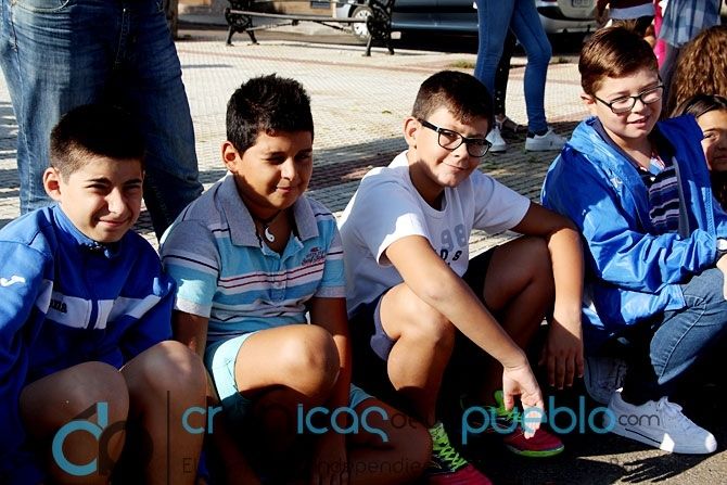Los escolares de los centros educativos de Puebla participaron del descubrimiento de la placa que conmemora la declaración de Puebla de la Calzada en 2015 como "Pueblo Solidario con el Alzheimer".
