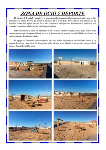 También informa el boletín sobre la inauguración de las nuevas instalaciones municipales realizadas con mano de obra de la localidad. Esta inauguración se realizará a través de una convivencia deportiva que reunirá a pequeños y adultos en torno a un programa de actividades.