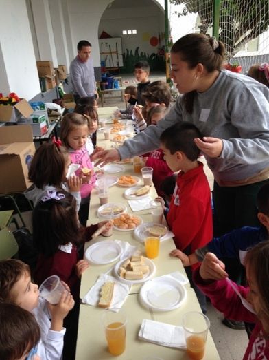 A media mañana, se les ofreció un desayuno saludable a todos los alumnos del centro, compuesto por leche, zumos, pan con aceite y fruta.