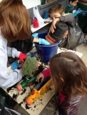 Para finalizar la actividad, los mayores del centro plantaron unos bonitos maceteros que posteriormente fueron repartidos por todas las aulas del centro y sembraron perejil en tiestos para todos los alumnos del colegio.