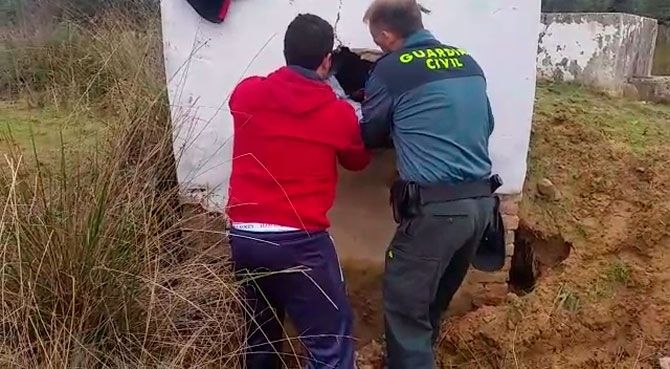 La Guardia Civil de Badajoz, junto con dos veterinarios de una clínica privada de esta capital pacense, rescataron a un perro que cayó a un pozo.