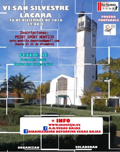 Como cada año, el ayuntamiento de Montijo, en colaboración de la A.D. Vegas Bajas y Point Sport, organizan la IV San Silvestre Montijana y la VI San Silvestre de Lácara.