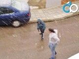 Como niños todos los habitantes se deleitaron de la caída de la nieve