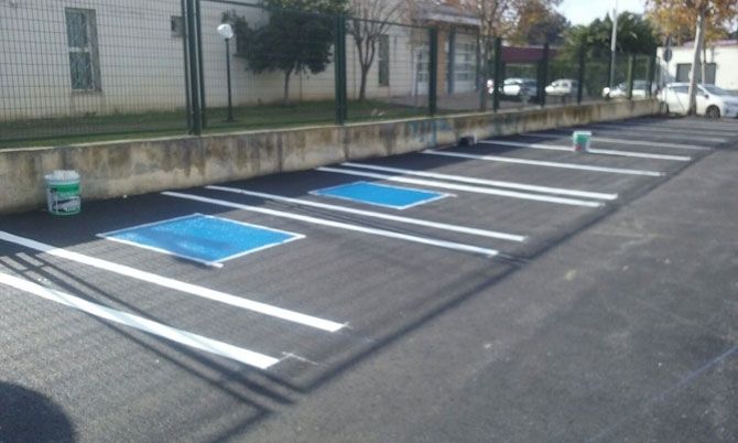 Trabajos de pintura en el aparcamiento de Aprosuba de Mérida