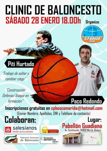El Club Polideportivo Bosco, dentro de sus actividades de formación técnica, ha organizado un clínic de baloncesto, que se desarrollará el próximo sábado 28 de enero, a partir de las 18 horas, en el Pabellón Guadiana.