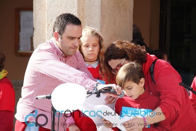 La actividad consiste en una marcha por el pueblo, todos juntos, niños, maestros, madres, padres, abuelos y todos los que se quieran sumar, todos con un dorsal del proyecto.