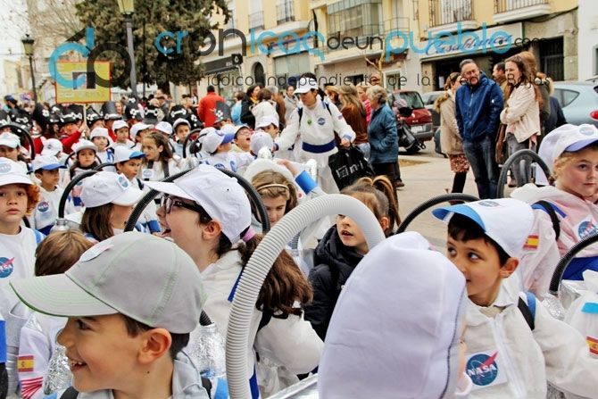 Los centros educativos de Montijo participaron en el desfile escolar de Carnaval, reuniéndose en la Plaza de España, donde hubo un espectáculo infantil.
