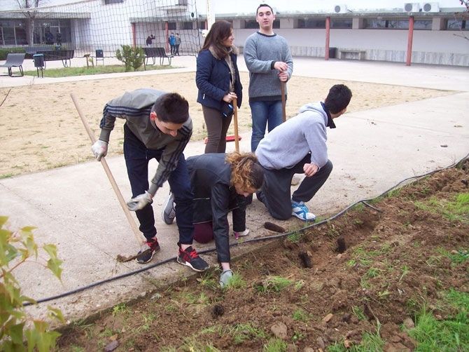 En segundo lugar, el 25 de febrero, se llevó a cabo una nueva edición del Proyecto de Reforestación y Ornamentación del Entorno Escolar con alumnos de 1º y 2º de PMAR, este proyecto consiste en la plantación de diferentes especies autóctonas de nuestra región en el patio del Instituto, concretamente este año se han utilizado ejemplares de romero, jara blanca y jara rizada. Esta es solo la primera fase ya que la actividad continúa durante todo el curso con el mantenimiento. la poda  e instalación de un sistema de riego por goteo para conservar en buen estado las especies plantadas.