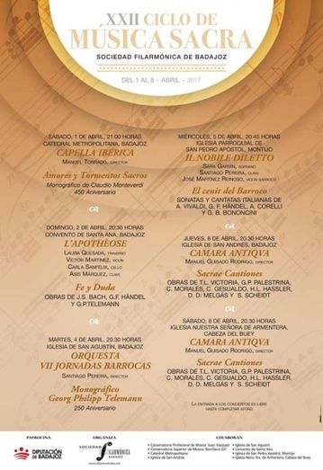 La XXII edición del ciclo de Música Sacra, que copatrocinan el Área de Cultura de la Diputación Provincial y la Sociedad Filarmónica de Badajoz, trae hasta Montijo uno de los conciertos que conforman este ciclo de conciertos.