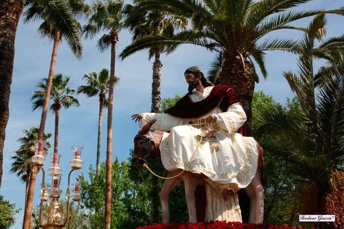 El Domingo de Ramos, 9 de abril 2017, después de la Bendición de Ramos y la Eucaristía celebrada en la explanada de la Ermita, desde el mismo paseo salía, en Puebla de la Calzada, la primera procesión de la Semana Santa poblanchina, paso de la Entrada Triunfal de Jesús en Jerusalén, conocida popularmente como “La Borriquita”.