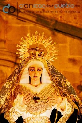 Posteriormente sobre las 23.30 horas hará lo propio la Hermandad de “Nuestra Señora de los Dolores recorrerá las calles Plaza de Jesús, Antonio Maura, Pza. España, Ramón y Cajal, Luis Braille, Cipriano Gcía Piñero, Sánchez Rivera, Pza.del Rey, Esteban Amaya, Sta. Clara, Peñas, Ibañez Marín, Campo de la Iglesia, Mercado, Extremadura, Conquistadores, Ermita de Jesús.