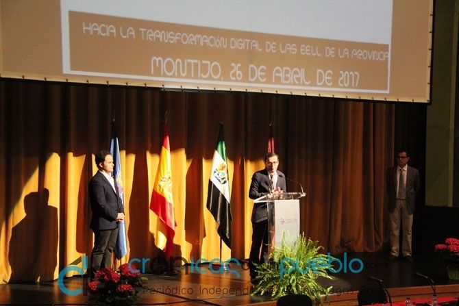 El Teatro Municipal de Montijo ha acogido en la mañana de este miércoles, 26 de abril, la presentación del XV Encuentro de Informática Municipal, que lleva a cabo todos los años la Diputación Provincial de Badajoz y que ha contado con la presencia de su Presidente, Miguel Ángel Gallardo y el alcalde de Montijo, Manuel Gómez.
