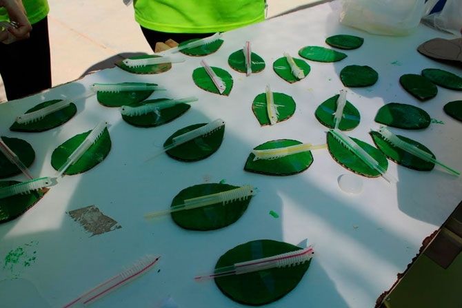 Taller 6: “EL GUSANO BAILÓN” (pintar unas hojas de cartón en la que irán pegado un gusano elaborado por los animadores).