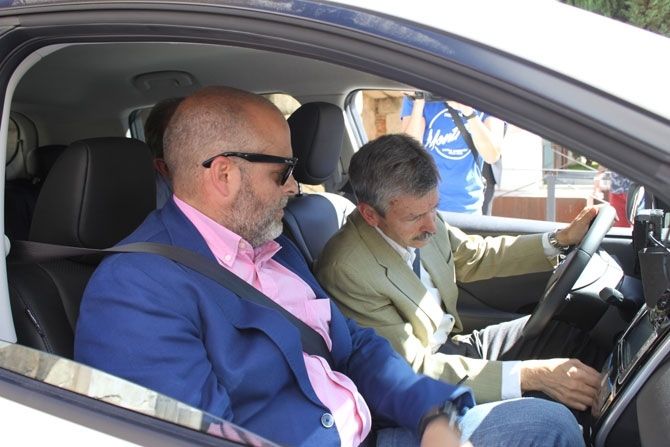 El delegado de Urbanismo Rafael España, ha asistido esta mañana a la llegada y salida de una de las etapas de la “Vuelta a E-spaña” que están realizando dos vehículos eléctricos Nissan Leaf. Al acto, que se ha celebrado en el Arco de Trajano, ha asistido el Consejero de Economía José Luis Navarro.