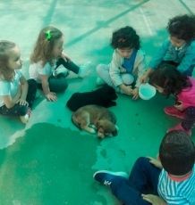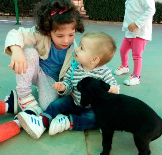 Al final del día, a la hora de la salida, dos voluntarias de esta asociación estuvieron animando a las familias de los niños a que conociesen la protectora y adoptasen o apadrinasen alguna mascota de las que tienen en acogida.