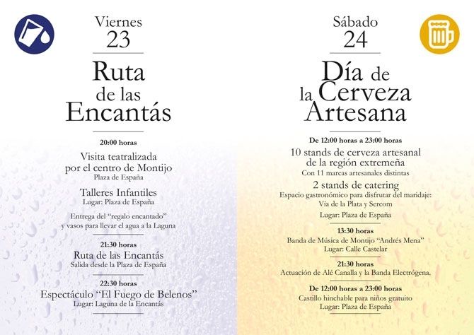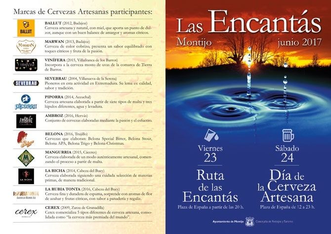 La Concejalía de Festejos del Ayuntamiento de Montijo ha incluido en la programación organizada con motivo de La Ruta de las Encantás, y como novedad este año, el Día de la Cerveza Artesana que se celebrará el próximo sábado, 24 de junio, coincidiendo con la celebración del día de San Juan.