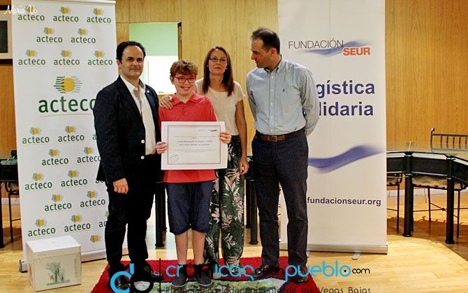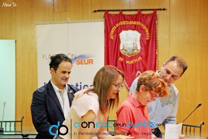 La Fundación Seur y ACTOTEC han hecho entrega en el Salón de Plenos del Ayuntamiento de Montijo de un cheque por valor de 7.639 euros a la familia de Adrián G.S., un niño de Montijo con trastorno múltiple del desarrollo que invertirá este dinero en la compra y adiestramiento de una mascota que ayudará al chico en su desarrollo a través de terapia asistida con el animal.