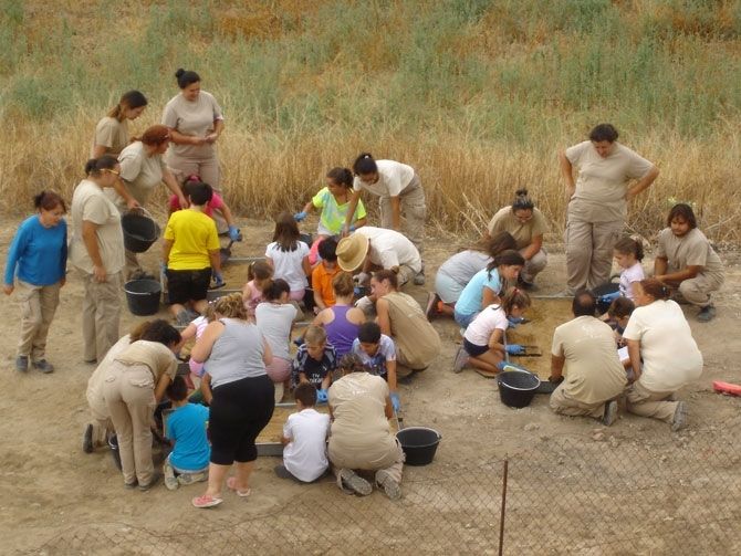 Los niños y las niñas han podido experimentar, haciendo una recreación de una excavación en cajones portátiles llenos de arena, en los que se han enterrado restos cerámicos que los niños, según las explicaciones dadas por el alumnado de “El Trampín”, tenían que sacar a la luz. Actividad que se seguirá manteniendo durante el verano con los distintos turnos del campamento de verano.