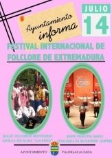 En Valdelacalzada se celebrará el Festival Internacional de Folclore de Extremadura, el día 14 a las 22 horas que contará con la presencia del Ballet Folclórico Universidad Católica Bolibiana "San Pablo" y el Grupo Municipal de Danza Folclórica de Beyarmudu (Chipre).