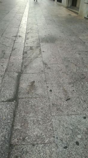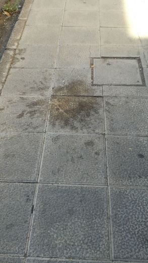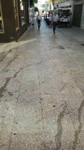 El calor de estos días hace que esta suciedad se vaya resecando e incrustando en el suelo, dando un aspecto feo e insalubre a nuestras calles.