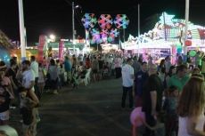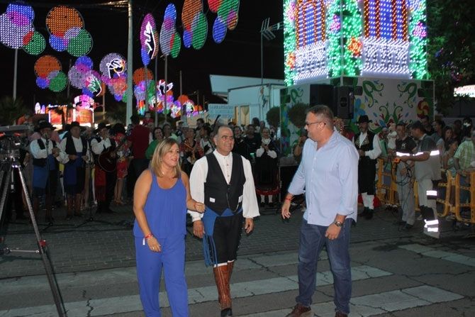 El alcalde Antonio Rodríguez Osuna, acompañado de miembros de la Corporación Municipal, asistieron anoche al encendido del recinto ferial que este año ha llevado a cabo el presidente de la Asociación Folklórica y Cultural Nuestra Señora de la Antigua, e hijo adoptivo de Mérida, Manuel Jaramillo Blanco.