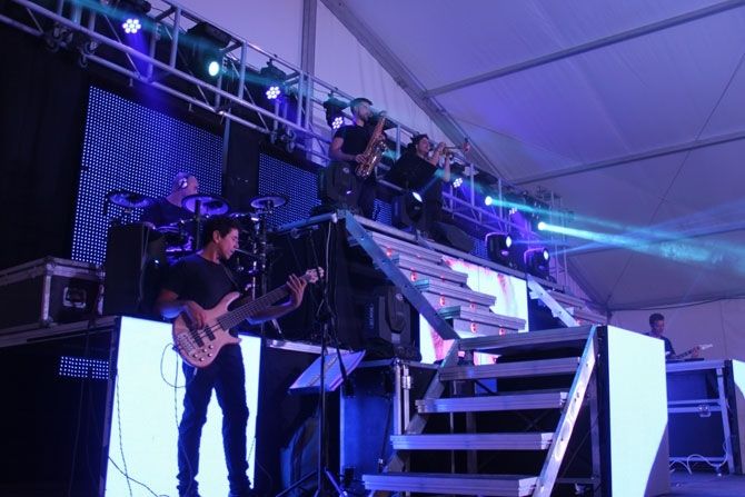 Una vez encendida la portada y la iluminación artística del Ferial las autoridades se trasladaron a la caseta municipal donde comenzó la actuación de La gran Orquesta.