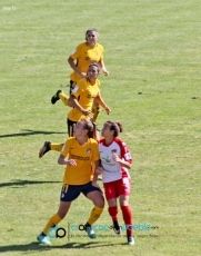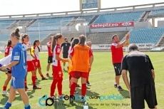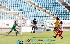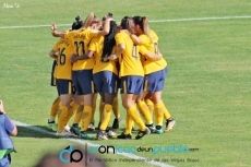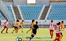 En el 9' las visitantes mandaban alto un centro desde la derecha y en el 16’ Alba Merino gozaba de la primera gran ocasión con un disparo cruzado desde dentro del área que detenía la guardameta. Pocos minutos después volvía a tenerla con una ocasión similar que la portera rival detenía en dos tiempos. Las visitantes se acercaban al arco de Yolanda Aguirre, que debutaba en la Liga Iberdrola, pero sin llegar a materializar. En el 27’ Carla asistía a Estefa y forzaba un córner, que más tarde Aina remataba arriba, y a la media hora de juego la visitante Carla remataba al palo. Se llegaba al descanso con 0-0.