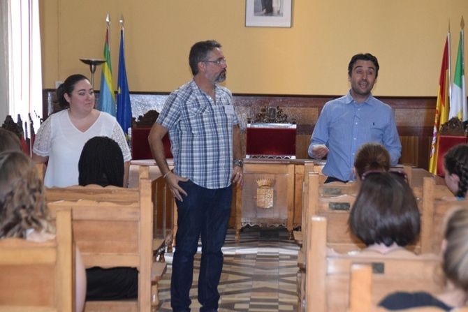 El alcalde Juan Mari Delfa Cupido ha recibido en el Ayuntamiento a una treintena de estudiantes provenientes de Alemania y Reino Unido a través del proyecto "From Symbols to Symphonies" en el que participa el I.E.S. Enrique Díez Canedo.