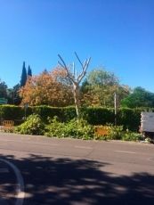 5) ¿ Cual es el motivo para mantener los restos de poda en la vía pública junto al acerado ? Es molesto, no es una buena imagen en una zona turística y es un peligro. Se puede podar lo que se va a retirar. Este es otro ejemplo de abandono, falta de planificación y organización de los recursos de nuestro ayuntamiento. Le pedimos al alcalde que tome medidas eficaces y programe esto como corresponde."