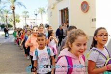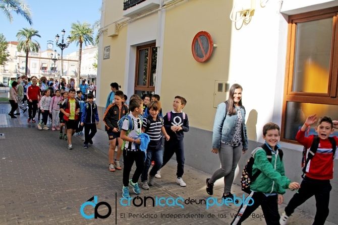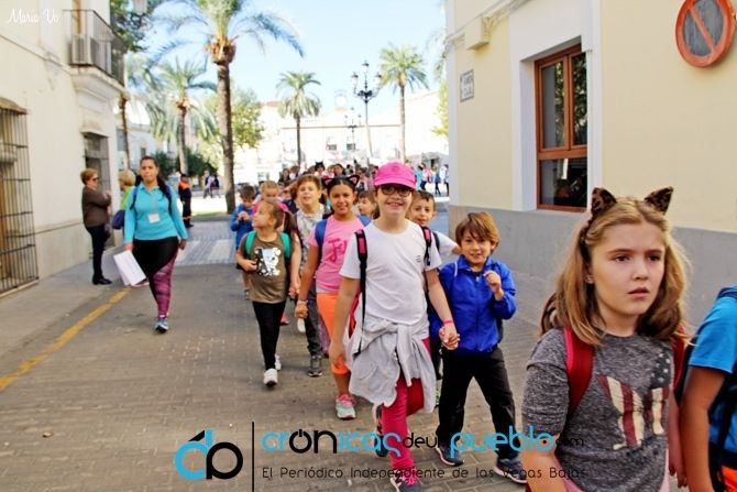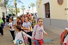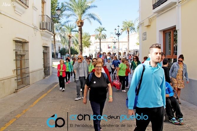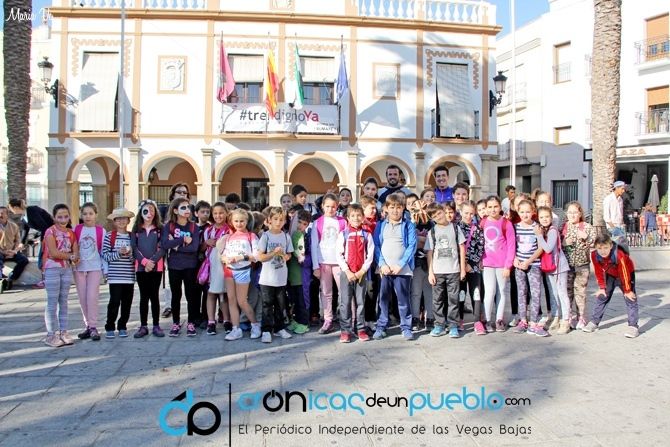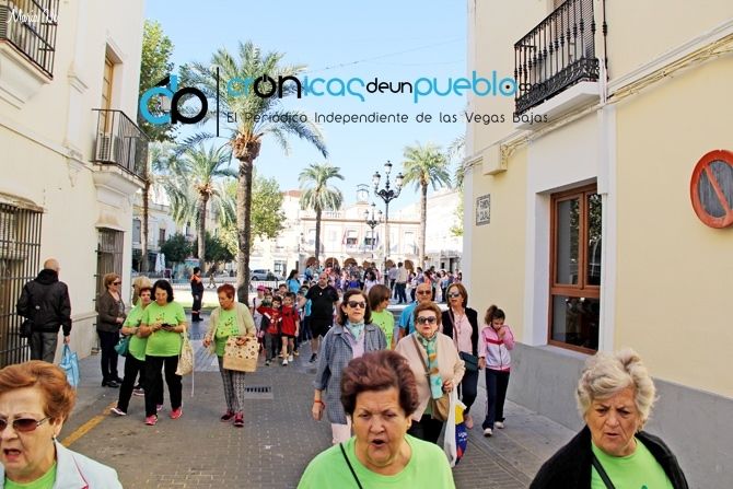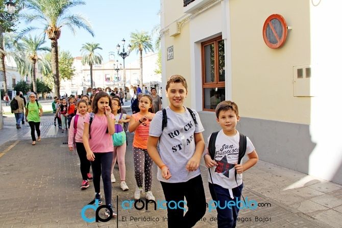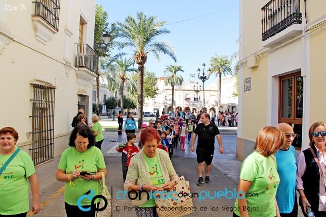Niños de todos los colegios y centros educativos de Montijo acompañados por tutores y profesores, acompañaron a los mayores de Montijo y Lácara que quisieron participar en la III Caminata Intergeneracional organizada con motivo de la Semana del Mayor Montijo-Lácara 2017.