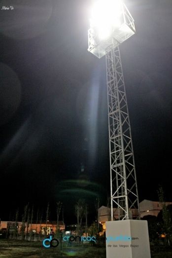 [Img #73871]Según ha podido conocer Crónicas de un Pueblo, la instalación está formada por 6 torretas metálicas de 12 mts  altura libre, en las cuales se han instalado 4 proyectores de 300 W 5500 T (120º) cada uno y 5 proyectores de 360 W 5500T (40º), excepto en dos torretas que hay 4 proyectores de 300 W 5500 T (120º) cada uno  y 4 proyectores de 360 W 5500T (40º). En total son 54 proyectores para instalaciones deportivas, con un sistema modular, compuesto por matrices LEDS, con superficies de disipación y óptica cónica individual. La potencia total de esta iluminación es de 17.280 W de consumo. Según nos informan desde Auto-Radio, empresa encargada de esta obra, si fuese en otra tecnología su consumo seria más del doble, siendo ésta una instalación eficiente y con un sistema de encendido que permite ahorrar, dependiendo del uso que se haga en ese momento. La instalación permite además el encendido individual de cada proyector y su orientación, lo que contribuye a una mejor iluminación y eficiencia.
