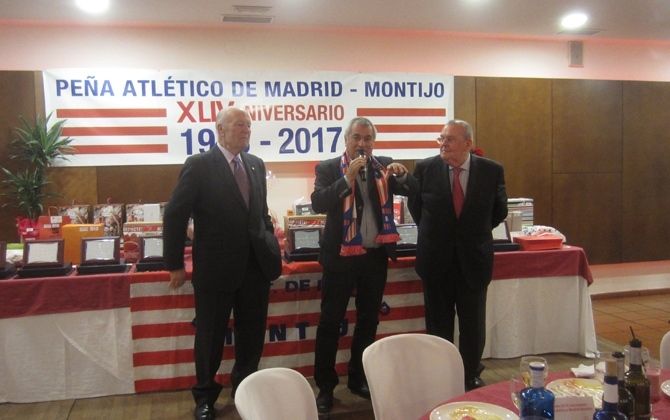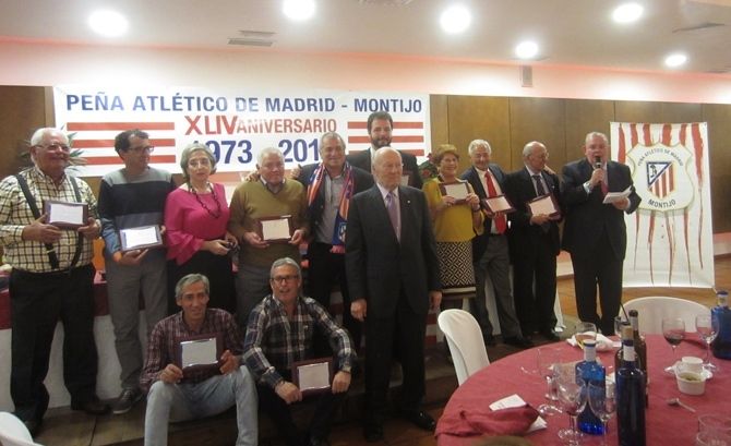 La Peña Atlético Madrid-Montijo, decana de las peñas deportivas montijanas, ha celebrado con una cena el 44 aniversario de su fundación (1973-2017). En un ambiente agradable, como suelen ser estos encuentros que organiza la Peña, se premió la fidelidad de diez socios que llevan 25 años en ella. Para la conmemoración de este aniversario asistió, en representación del club, el jugador Marcelino Pérez Ayllón, que militó en el equipo madrileño durante (1974-1985). Ganó una liga, dos copas del Rey y la Copa Intercontinental. Jugó con el conjunto madrileño 260 partidos de fútbol. Fue internacional con la selección española. Marcelino obsequió a la Peña con una camiseta con el dorsal 44, que son los años que ha cumplido (1973-2017).