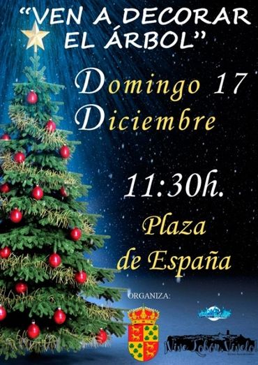 Entre las distintas actividades, el próximo domingo, 17 de diciembre, a partir de las 11:30 horas, todos los vecinos que lo deseen podrán participar en la decoración del árbol de Navidad ubicado en la Plaza de España.