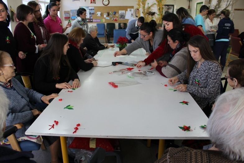 En primer lugar, se llevó a cabo una dinámica de presentación para conocer los nombres de todos y algún gusto navideño, titulada “LA PANDERETA PARLANCHINA”. A continuación, realizaron la dinámica “REGALA RECUERDOS”, que consiste en mostrar dos imágenes del mismo objeto en diferentes épocas que tengan relación con las Navidades, para que observasen su evolución, dando lugar a realizar comentarios de estás mientras las visualizaban y posteriormente crear un coloquio entre todos. Seguidamente, se desarrolló la tercera dinámica, “BROCHE DE PASCUA” en la que los mayores tenían que elaborar un broche siguiendo las indicaciones de los animadores, que en este caso era la flor de Pascua. Por último, se ejecutó la dinámica “¿QUIÉN CANTA?”, en la que se reprodujo una serie de villancicos durante unos segundos a la vez que se les mostraba una serie de imágenes de los cantantes, para que averiguasen cuál de ellos era su intérprete y posteriormente cantarla entre todos.