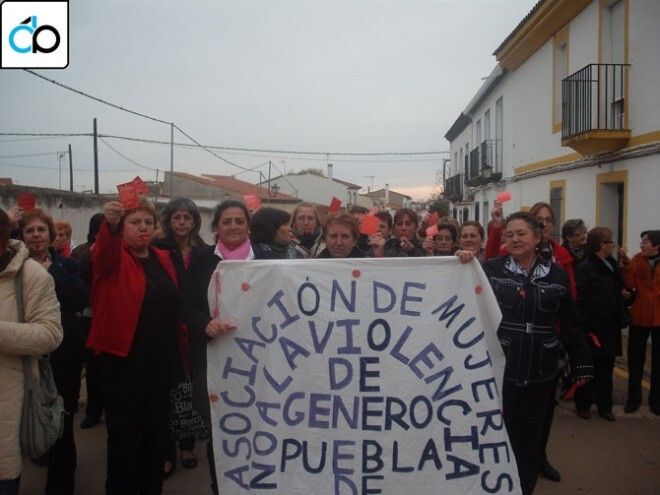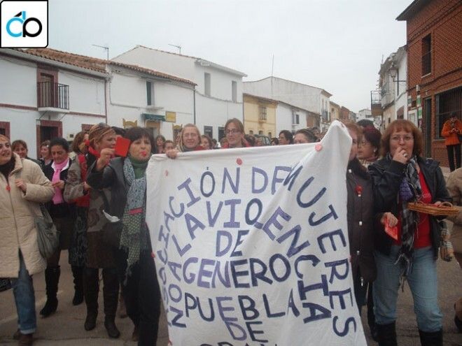En Puebla de Obando se repartieron carteles y tarjetas rojas entre los bares y comercios y el 25 de noviembre se realizó una marcha y lectura de manifiesto organizada por la Asociación de Mujeres.