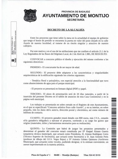 Con motivo de la puesta en valor del pozo situado en la calle Azorín de Montijo el Ayuntamiento de la localidad CONVOCA a CONCURSO PÚBLICO, el diseño y ejecución del mismo.