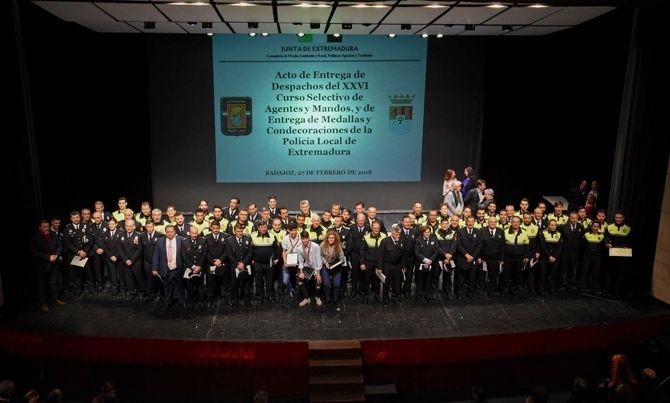 Se ha celebrado en el Teatro López de Ayala de Badajoz, la entrega de despachos y medallas a la Policía Local de Extremadura. Acto que fue presidido, entre otras autoridades, por el presidente de la Junta de Extremadura, Guillermo Fernández Vara y la delegada del Gobierno en Extremadura, Cristina Herrera.