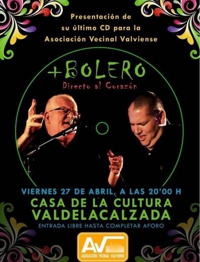 El grupo +Bolero presenta en Valdelacalzada este mes su nuevo disco, “Directo al Corazón”, disco grabado en el Teatro Municipal de Montijo en riguroso directo, en un concierto acústico que Fermín García y José Luis Pérez ofrecieron a voz y piano.