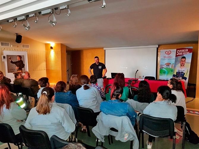 El campeón nacional Rubén Tanco estuvo ayer en Montijo ofreciendo una charla de motivación frente a la discapacidad.