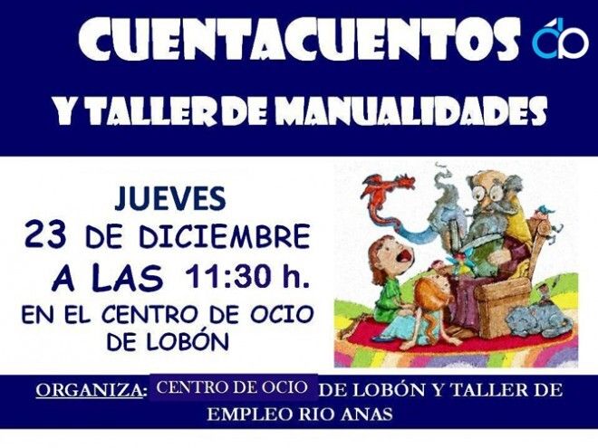 El día 23 de diciembre, a las 11:30 horas, en el Centro de Ocio de Lobón se realizarán cuentacuentos y talleres de manualidades, organizado por el Taller de Empleo Río Anás y el Centro de Ocio.