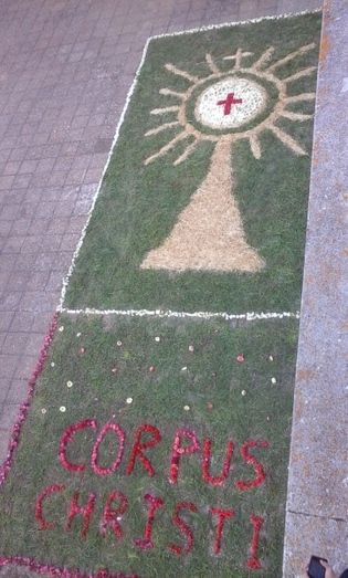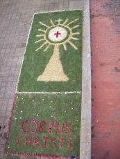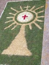 Siguiendo una tradición de más de 30 años, voluntarios de la Parroquia de San Gregorio han confeccionado una alfombra de flores para adornar el recorrido de la procesión del Corpus Christi.